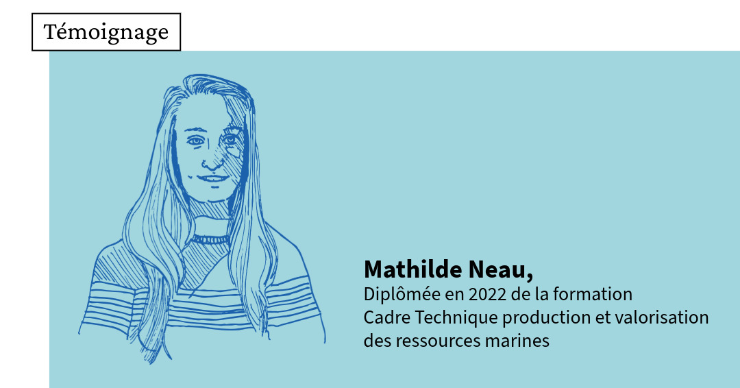 Mathilde, Responsable de production microalgue27 novembre 2025Diplômée en 2022 de la formation Cadre technique production et valorisation des ressources marines du Cnam-Intechmer, Mathilde Neau est aujourd’hui responsable de production chez Inalve, une entreprise innovante spécialisée dans les microalgues. Elle revient sur son parcours, ses expériences et la manière dont la formation l’a préparée à évoluer dans le secteur de la production et de la valorisation des algues.
